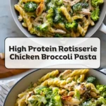 This High Protein Rotisserie Chicken Broccoli Pasta is the kind of easy dinner that makes busy nights feel a whole lot easier. Tender rotisserie chicken, wholesome broccoli, and perfectly cooked pasta come together in a creamy, cheesy sauce that tastes cozy and satisfying without being overly heavy. It is a quick dinner, easy recipe, and smart meal prep idea all in one, making it perfect for weeknight meals, family dinner, lunch leftovers, and high protein food ideas when you want something comforting, balanced, and seriously delicious.