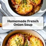 Rich, deeply caramelized onions simmered in savory beef broth and topped with crusty toasted baguette and bubbly melted Gruyère cheese—this Homemade French Onion Soup is the ultimate comfort food. Perfect for a cozy dinner, holiday starter, or elevated weeknight meal, this easy recipe delivers restaurant-quality flavor right from your kitchen. Whether you’re searching for hearty dinner ideas, classic comfort food recipes, or impressive yet simple food ideas, this timeless soup is always a winner.