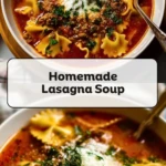 Homemade Lasagna Soup gives you all the cheesy, saucy comfort of classic baked lasagna without the layering or long oven time. This cozy one-pot soup is packed with crumbled Italian sausage, tender pasta, a tomato-rich broth, and a spoonful of creamy ricotta on top. It’s the perfect easy dinner and quick comfort meal for busy weeknights, a hearty one-pot recipe that fits right into your favorite dinner ideas and cold-weather comfort food cravings.
