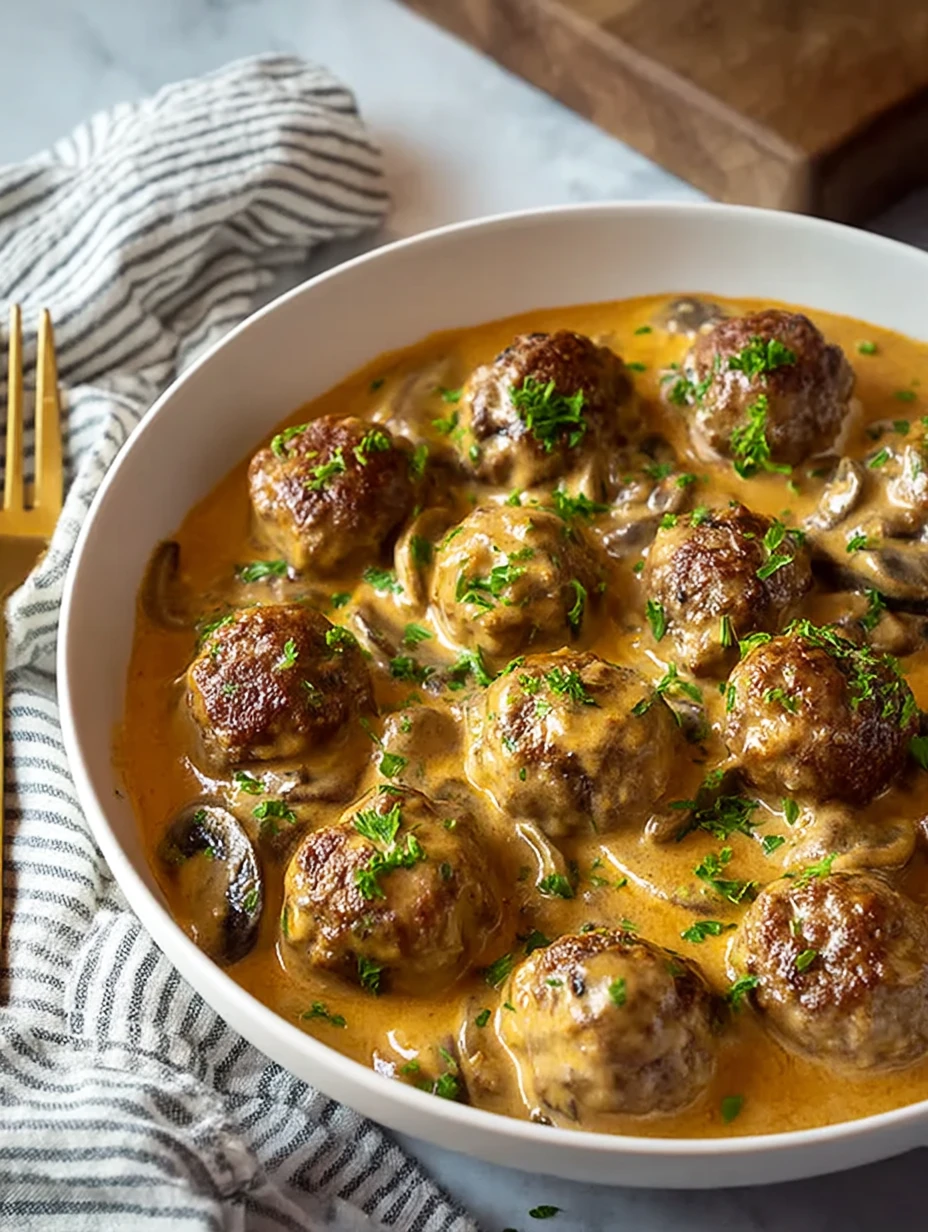 Get ready to dive into a creamy, savory dinner that feels like a warm hug in a bowl. This *Homemade Meatball Stroganoff* combines tender homemade beef meatballs with a luscious mushroom and onion gravy, finished with tangy sour cream. Whether you’re craving a quick dinner, hearty comfort food, or an easy weeknight recipe, this one checks all the boxes. Serve it over noodles, rice, or mashed potatoes—it’s one of those versatile dinner ideas that always delivers. Simple to make, big on flavor, and sure to be a family favorite.