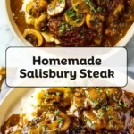 This Homemade Salisbury Steak is the ultimate comfort food—juicy beef patties seasoned with savory spices, seared to perfection, then smothered in a rich mushroom and onion gravy. It’s an easy recipe perfect for a quick dinner, cozy family meal, or satisfying leftovers. Pair it with mashed potatoes, noodles, or roasted veggies for a dinner idea that always delivers. Whether you’re looking for hearty food ideas, weeknight comfort, or an easy recipe that tastes like home, this classic dish checks every box.