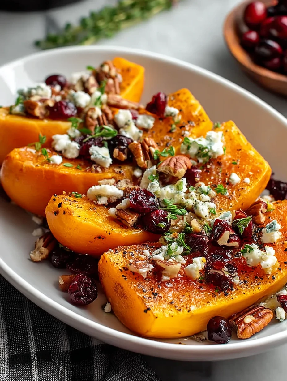Honey Roasted Butternut Squash with Cranberries, Pecans, and Feta