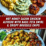 There’s comfort food, and then there’s bold, flavor-packed comfort food. This Hot Honey Cajun Chicken Alfredo with Basil Feta Swirl & Crispy Brussels Chips takes the creamy classic pasta dish you love and transforms it into something unforgettable. Sweet heat from hot honey caramelizes beautifully against Cajun-spiced chicken, while a velvety Alfredo sauce ties everything together.