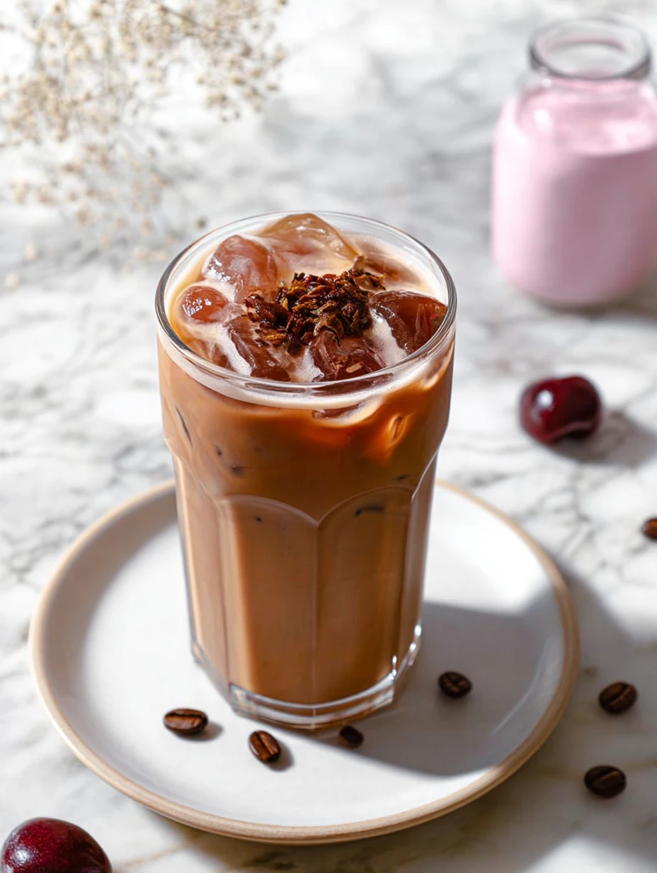Each ingredient plays an important role in creating that creamy, spiced, fruity balance. Keeping the ingredient list simple helps the cherry and chai stand out without overwhelming the drink.