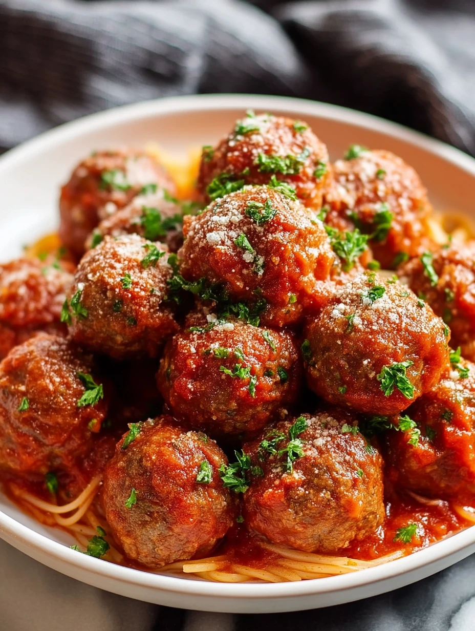Few dishes bring comfort like a heaping plate of spaghetti topped with tender, juicy Italian meatballs. With their savory blend of herbs, garlic, and perfectly seasoned beef, these meatballs are the definition of hearty, homestyle cooking. This recipe delivers that classic taste you crave, simmered in a rich tomato sauce and finished with a generous sprinkle of Parmesan.