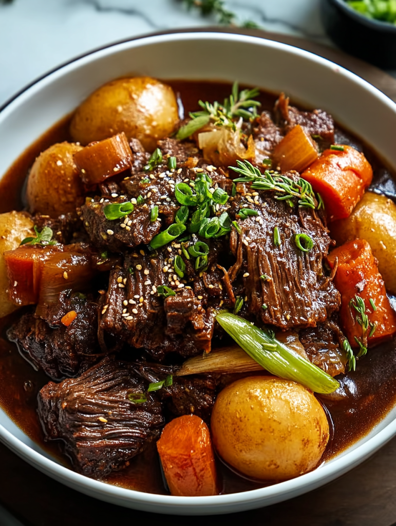 Take your dinner game up a notch with this flavor-packed Korean Style Pot Roast—a delicious fusion of traditional comfort and bold Korean seasoning. This easy recipe brings together melt-in-your-mouth chuck roast, soy sauce, sesame oil, and garlic, simmered with tender carrots and potatoes. It’s a cozy, fuss-free dish ideal for an easy dinner, hearty meal prep, or a slow-cooked weekend treat. Perfect for fans of bold food ideas, dinner ideas with a twist, and anyone craving a satisfying yet simple homemade feast. Great for both family meals and entertaining.