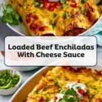 Get ready to serve a dinner that disappears fast. These Loaded Beef Enchiladas With Cheese Sauce are packed with seasoned ground beef, wrapped in soft flour tortillas, and smothered in a rich, creamy homemade cheese sauce that bakes up golden and bubbly. This easy dinner recipe is perfect for busy weeknights, family gatherings, or whenever you need comforting food ideas that truly satisfy. With bold Tex-Mex flavor, melty cheddar and Monterey Jack cheese, and a hearty beef filling, this dish delivers everything you love about classic enchiladas in one pan. Whether you’re searching for quick dinner ideas, an easy recipe for meal prep, or a crowd-pleasing comfort food favorite, these beef enchiladas are guaranteed to become a repeat request in your home.