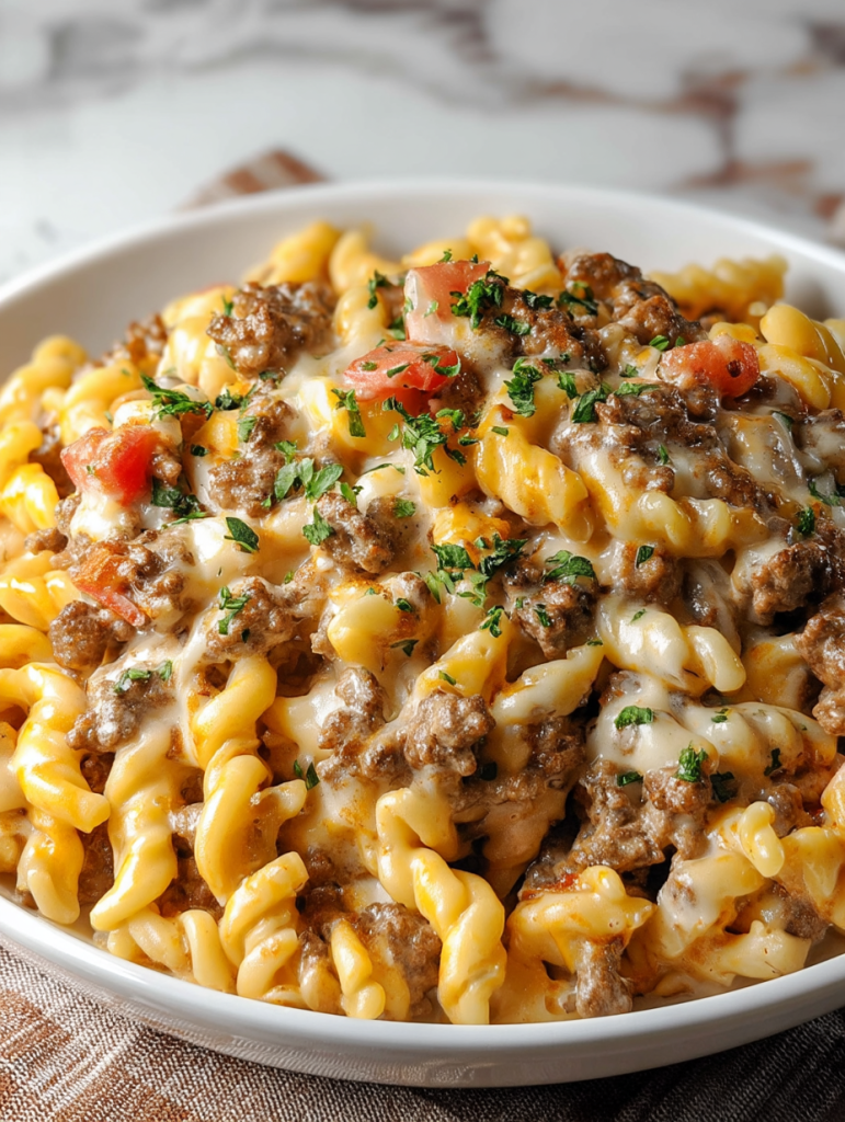 Turn your favorite diner comfort food into a creamy pasta dream with this Loaded Cheeseburger Alfredo Pasta. It’s a satisfying, one-pan weeknight dinner that brings together seasoned ground beef, melty cheese, creamy Alfredo sauce, and your favorite pasta all in under 30 minutes. Whether you’re hunting for quick dinners, family-friendly meals, or cozy comfort food ideas, this recipe checks every box. It’s perfect for meal prep, pasta lovers, and anyone craving a rich, cheesy, easy recipe to warm up your evening.