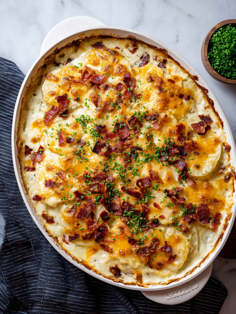 Looking for the ultimate comfort food side dish? These Loaded Scalloped Potatoes are everything you want—ultra-creamy, cheesy, and layered with crispy bacon and savory garlic cream sauce. Perfect for holiday dinners, cozy weekends, or indulgent weeknight meals, this easy recipe transforms humble potatoes into a crowd-pleasing masterpiece. Whether you’re after quick dinner ideas, hearty food ideas, or a new easy recipe to add to your rotation, these scalloped potatoes check all the boxes. Ideal for family-style dining or potluck favorites, it’s one of those irresistible dinner ideas that’s both simple and spectacular.