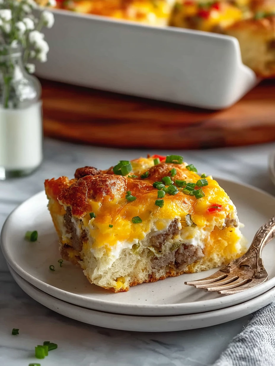 What makes this one such a keeper is how practical it is. You can assemble it the night before, cover it, and let the refrigerator do the work while the flavors settle together. By morning, all that is left is baking it until golden and serving generous squares straight from the pan.