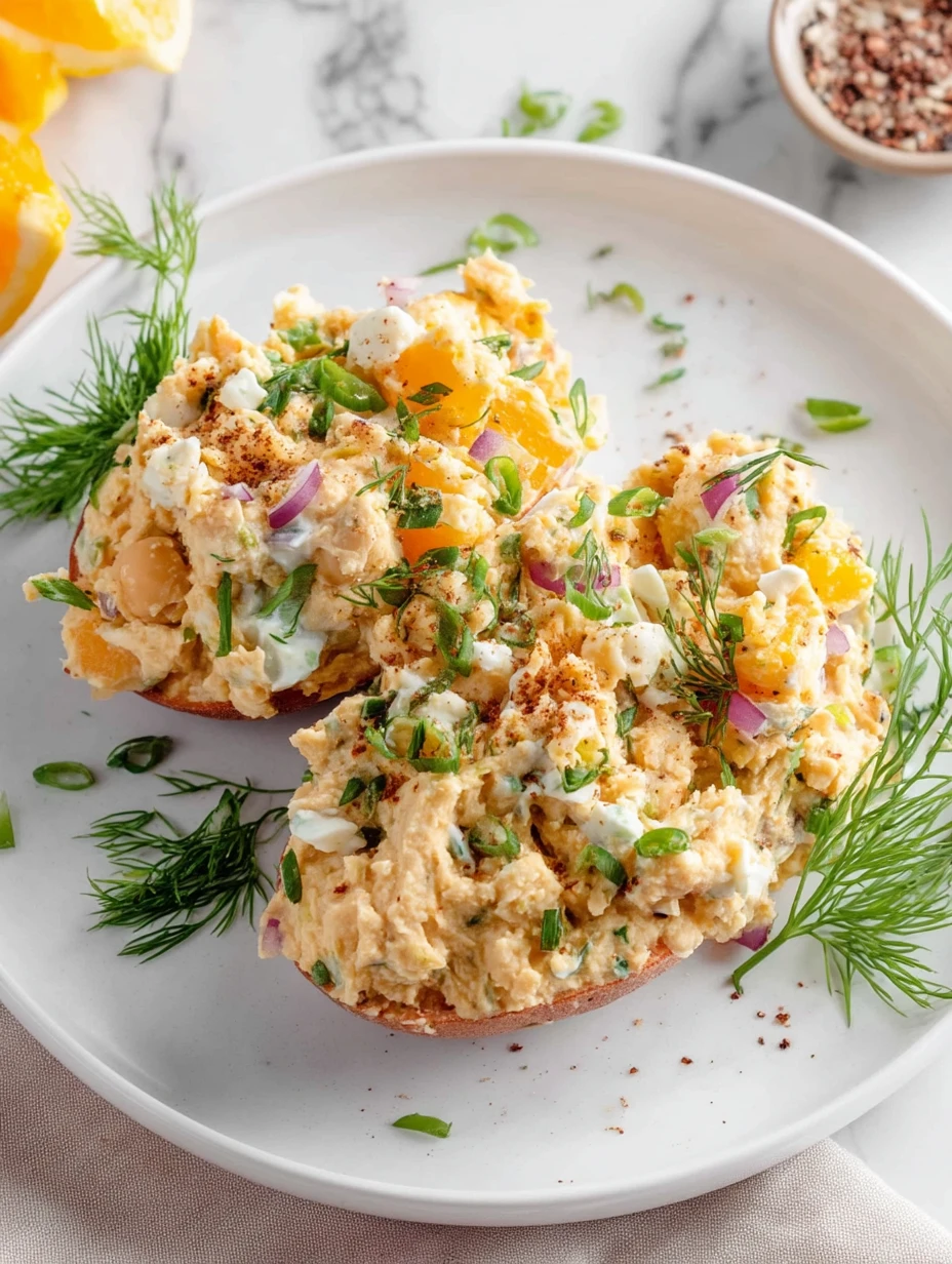 This recipe makes enough for about 4 generous servings, especially if you’re piling it onto bread or loading it into baked sweet potatoes. For smaller portions as a side salad or snack with crackers, you can easily stretch it to 5–6 servings.