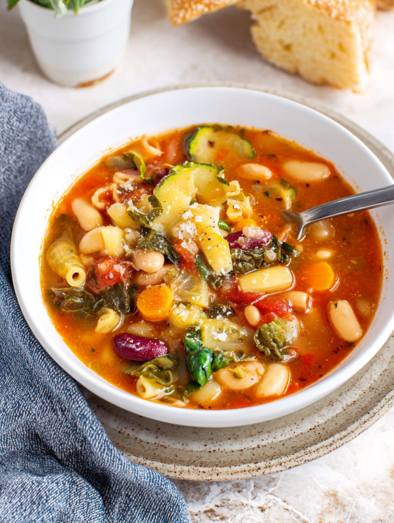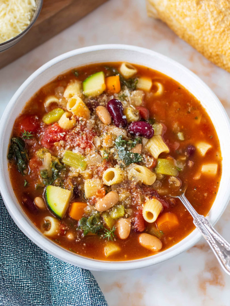 Get ready to cozy up with a bowl of vibrant, veggie-packed Minestrone Soup! This hearty Italian classic is filled with tender beans, colorful vegetables, and small pasta simmered in a rich tomato broth. It’s the ultimate comfort food that fits into your weeknight routine or weekend prep. Whether you’re craving a healthy snack, easy dinner, or quick lunch idea, this satisfying one-pot meal delivers bold flavor and wholesome ingredients every time. Ideal for vegetarians and easily adaptable for gluten-free diets, this easy recipe checks all the boxes for feel-good food ideas and dinner ideas that nourish.