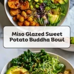 Craving a cozy bowl that still feels light and energizing? This Miso Glazed Sweet Potato Buddha Bowl layers fluffy quinoa, caramelized sweet potatoes, crispy chickpeas, fresh kale, carrots, and avocado under a silky miso-tahini drizzle. It’s an easy dinner that also works as a quick breakfast leftover or healthy snack, perfect when you’re hunting for new breakfast ideas, dinner ideas, easy recipe inspiration, and weeknight food ideas that actually taste exciting.