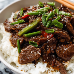 When it comes to bold, saucy, and satisfying weeknight meals, this Mongolian Beef Easy Flavor Packed Stir Fry delivers on all fronts. Thinly sliced beef is flash-seared until beautifully caramelized, then coated in a rich, savory sauce made with soy, garlic, and brown sugar. Served over fluffy rice and topped with fresh scallions, it’s everything you want in a quick dinner—comforting, flavorful, and incredibly simple to make.