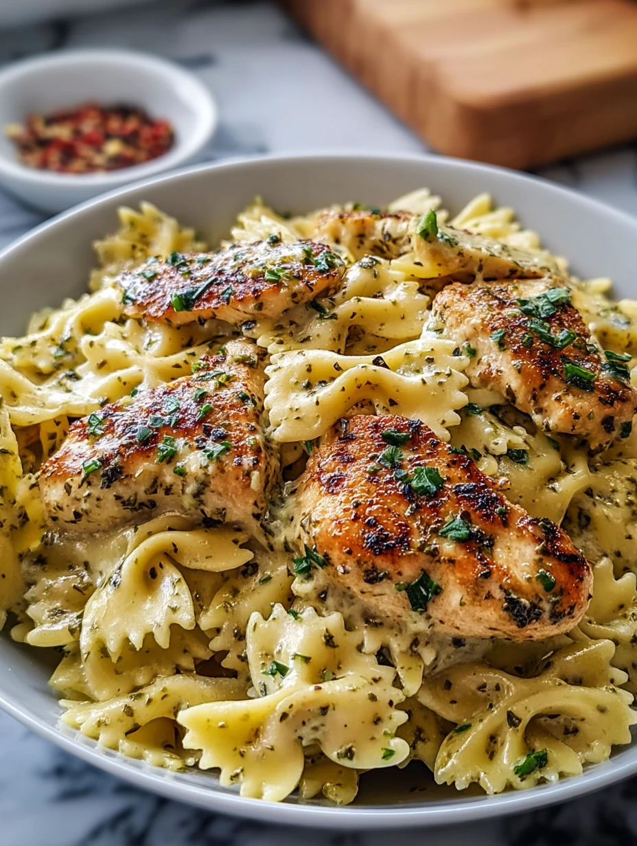 Rich, creamy, and full of flavor, Mozzarella Garlic Butter Chicken Bowties in Cheesy Cream is the kind of weeknight dinner that brings everyone to the table. Imagine tender grilled chicken with golden edges nestled in buttery garlic cream sauce, clinging to every fold of al dente bowtie pasta. The sauce is silky and cheesy, speckled with fresh herbs and crushed red pepper for just a touch of heat.
