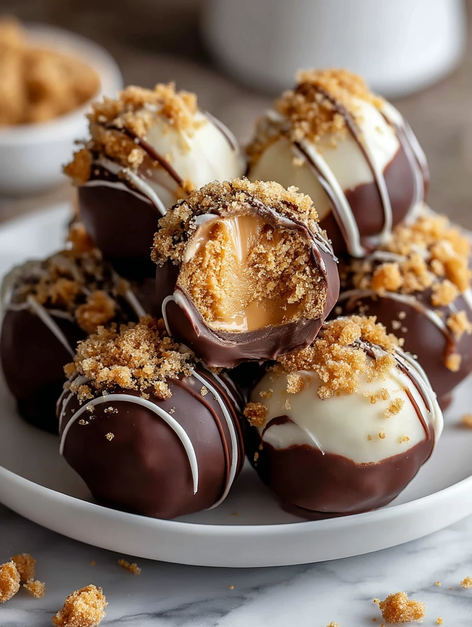 Serve them well‑chilled on a pretty platter, or pile them into a shallow bowl and let the crumbs and drizzle be part of the presentation. They’re rich enough that even a small bite feels special, so they’re perfect for dessert tables, holiday trays, or gifting in little boxes.