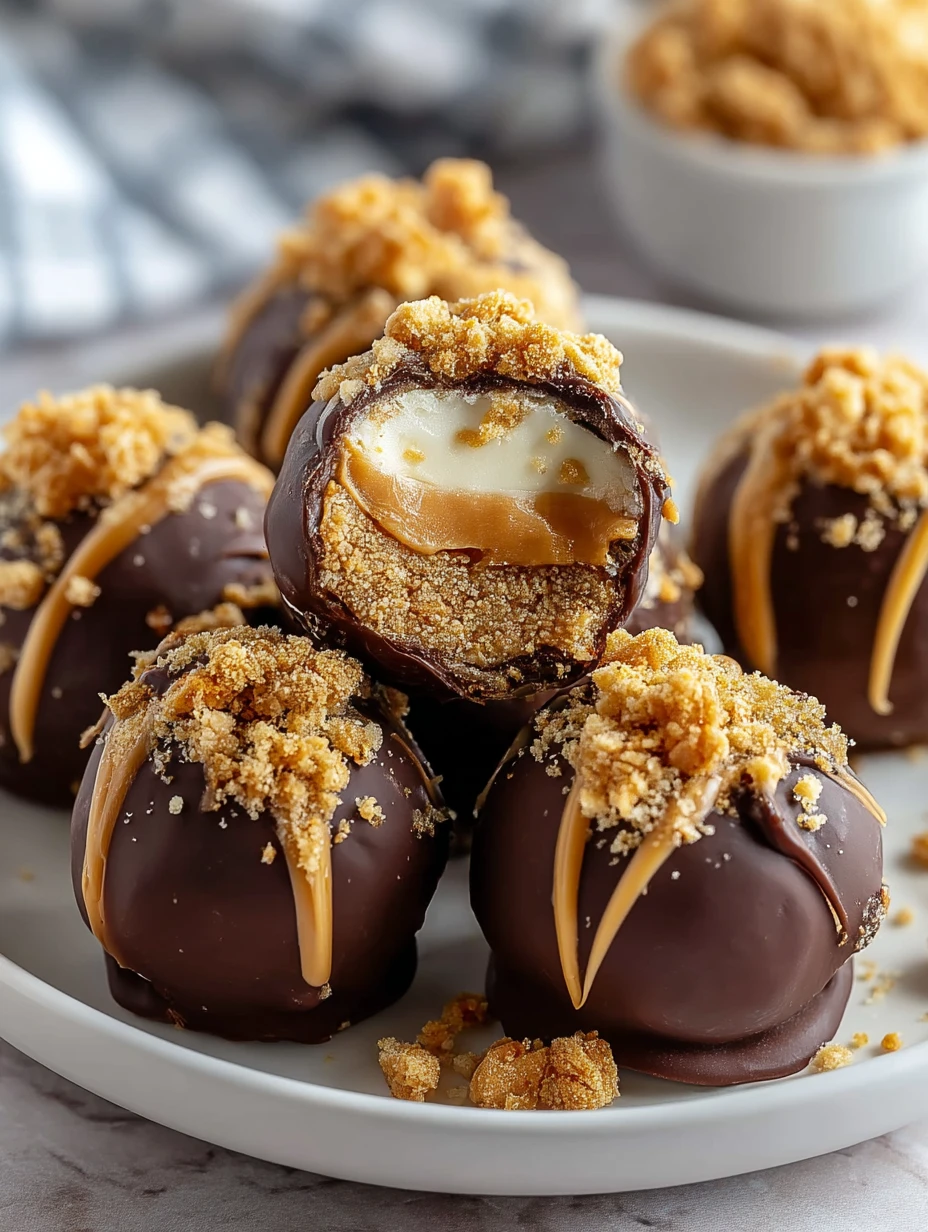 Imagine biting through a crisp chocolate shell into a creamy layer of peanut butter cheesecake, a ribbon of soft caramel, and a buttery cookie crumb base. These no-bake peanut butter cheesecake balls taste like a mash‑up of a truffle, cheesecake, and your favorite candy bar all rolled into one perfect bite.