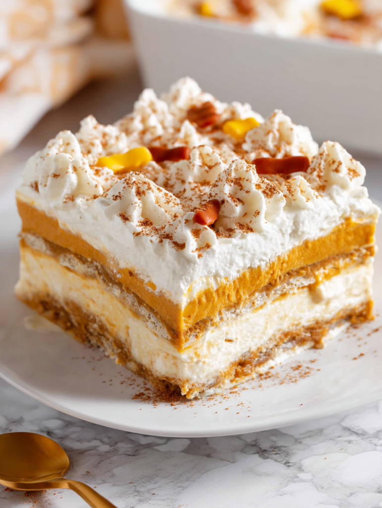 No Bake Pumpkin Lasagna Dessert