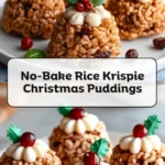 These No-Bake Rice Krispie Christmas Puddings are the kind of festive treat that instantly makes a dessert table look more magical. They have that cozy Christmas pudding look everyone loves, but instead of a long ingredient list or oven time, you get a fun, simple sweet made with crisp rice cereal, melted marshmallows, and cheerful holiday decorations. Perfect for quick dessert ideas, no-bake treats, easy holiday recipes, Christmas party food, food ideas, and sweet snack recipes, they’re cute, chewy, and wonderfully easy to make.