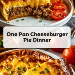 This One Pan Cheeseburger Pie Dinner is the ultimate weeknight hero. It brings together everything you love about a classic cheeseburger—savory seasoned ground beef, melty cheddar cheese, a hint of mustard and ketchup—all tucked into a flaky golden pie crust. No grill needed, no fuss, and just one pan to wash! It’s quick, hearty, satisfying, and guaranteed to impress picky eaters and food lovers alike. Perfect for easy dinner ideas, quick meals, comfort food cravings, or even a next-day lunch.