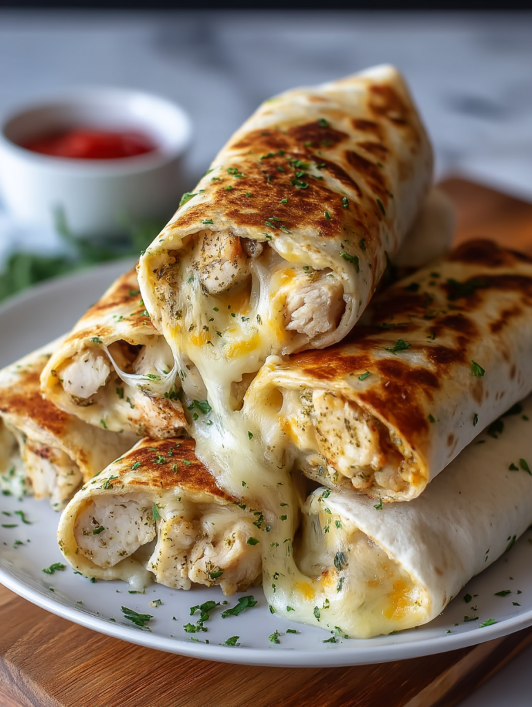 Ooey-Gooey Cheesy Garlic Chicken Wraps