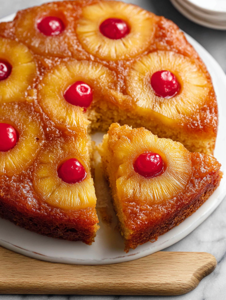 Golden, glossy, and irresistibly moist, Pineapple Upside Down Cake is the vintage dessert that never goes out of style. The moment you flip the pan and reveal those caramelized pineapple rings studded with cherries, you know you’re about to serve something special. With its tender yellow cake base and buttery brown sugar topping, this cake is both visually stunning and decadently delicious.
