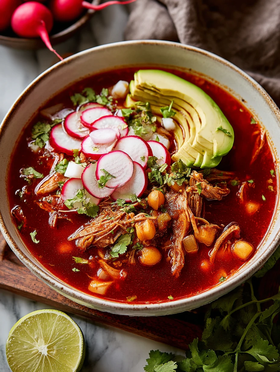 Get ready to experience the heart and soul of Mexican cuisine with this bold and comforting Pozole Rojo. Made with tender pork, earthy dried chiles, and plump hominy, this vibrant red soup is deeply satisfying and easy to personalize with fresh toppings like avocado, radishes, and lime. Whether you’re looking for a cozy easy dinner, a flavorful one-pot meal, or crowd-pleasing food ideas, this Pozole Rojo recipe delivers. It’s perfect for holidays, weekend gatherings, or a quick warm-up on a chilly evening. Full of rich taste, texture, and comfort—it’s a must-try for every home cook.