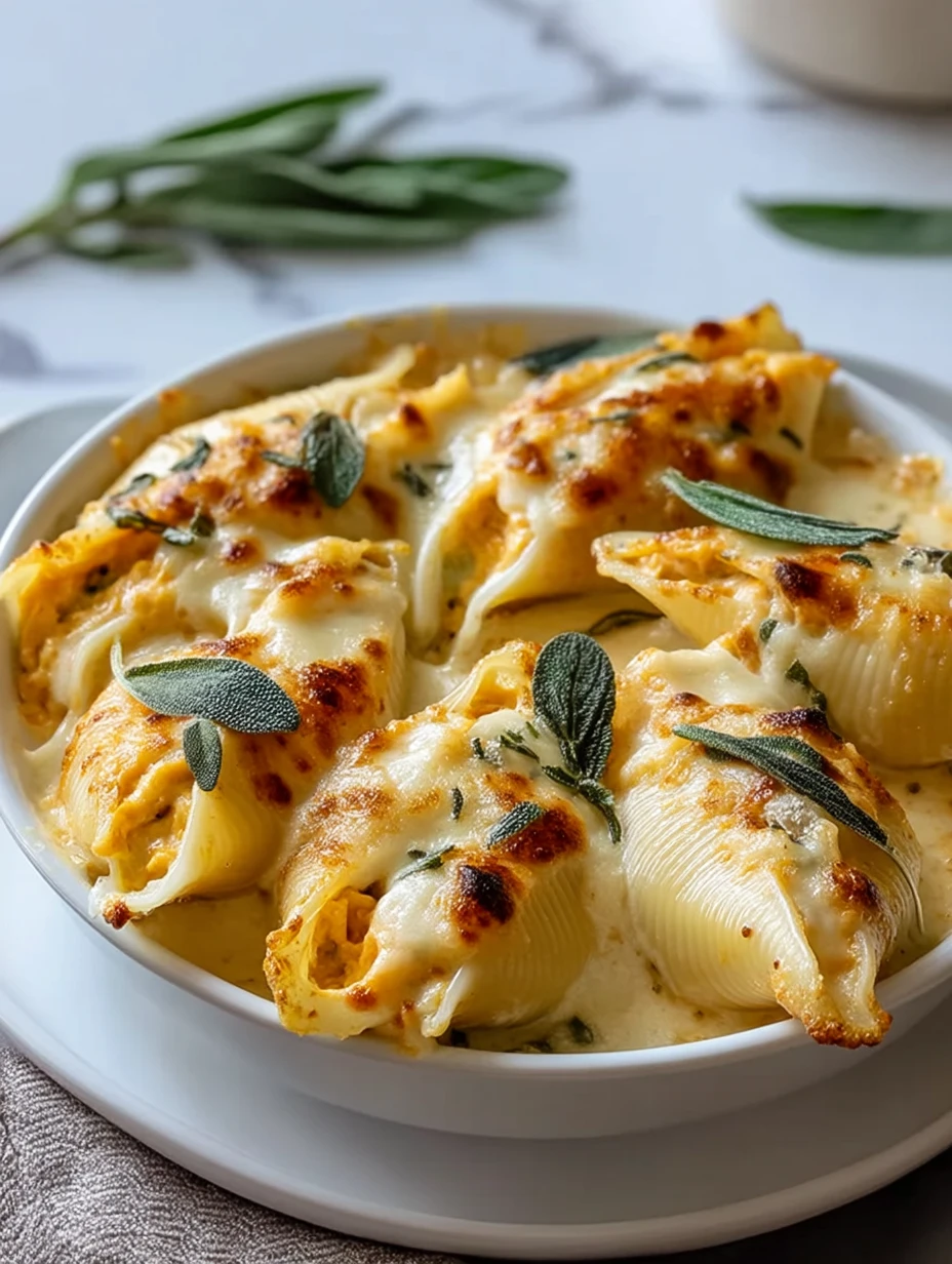 Pumpkin Gouda Stuffed Shells With Brown Butter Sage Alfredo Sauce