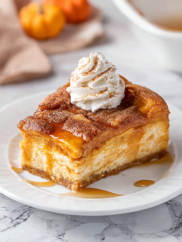 Golden, buttery, and layered with warm pumpkin spice, this Pumpkin Sopapilla Cheesecake is everything fall dessert dreams are made of. Imagine creamy pumpkin cheesecake filling tucked between flaky crescent dough, all topped with a cinnamon-sugar crust and drizzled with honey. It’s a hybrid treat that marries the charm of sopapillas with the coziness of cheesecake bars.