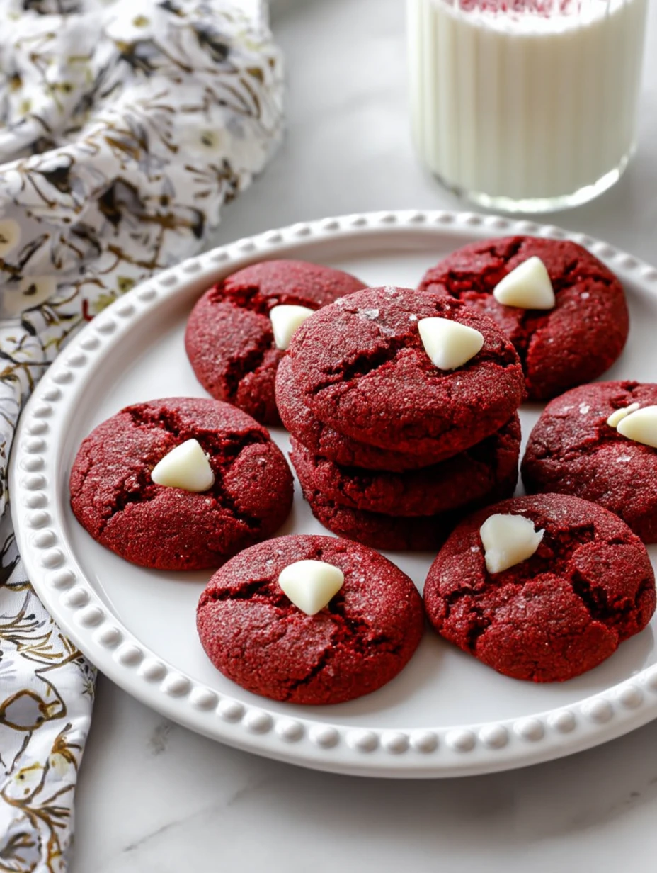 These cookies are the kind of dessert that feels special while staying wonderfully easy. You get the classic red velvet look, a tender and chewy bite, and sweet creamy bursts from the white chocolate. They are perfect when you want a homemade dessert that looks impressive but does not take much planning.