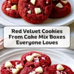 There is something extra fun about baking a batch of bright red cookies that look bakery-worthy but come together with almost no fuss. These red velvet cookies from cake mix boxes everyone loves have that rich cocoa-vanilla flavor, soft centers, lightly crisp edges, and creamy white chocolate melts that make them disappear fast.
