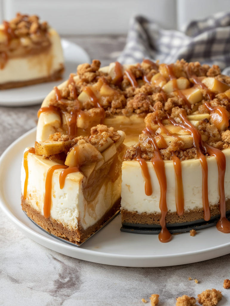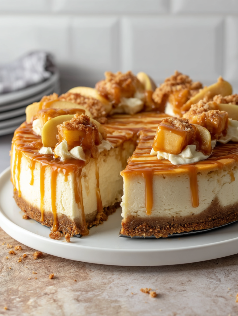 This cheesecake is pure comfort with a touch of elegance. It’s ideal for impressing guests, gifting to loved ones, or treating yourself after a long week. The flavor layers keep evolving with every bite: the tang of cream cheese, the warm spices in the apple filling, and the rich, buttery caramel sauce with just a kiss of sea salt.