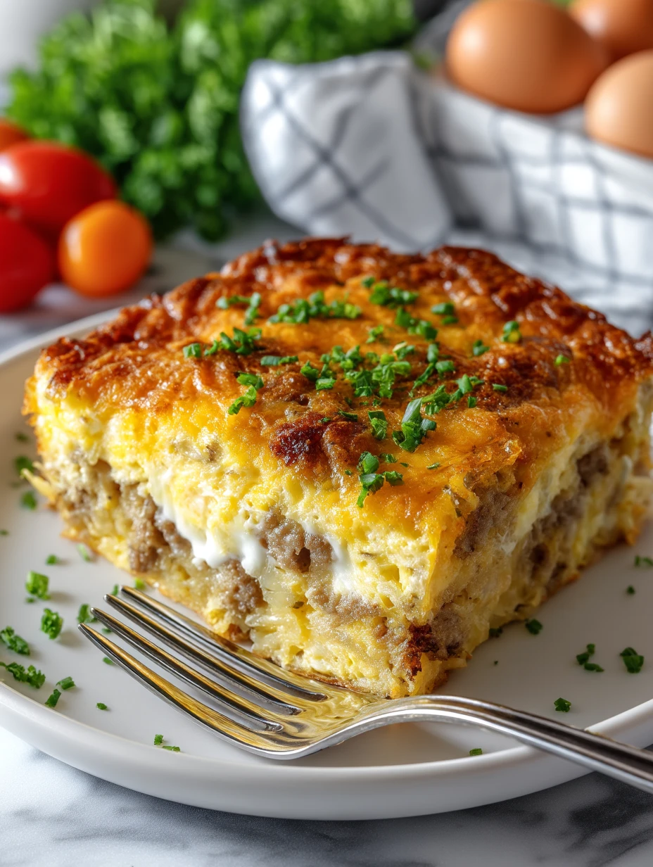 Golden, cheesy, and packed with hearty breakfast flavor, this Sausage Egg and Cream Cheese Hashbrown Casserole is the kind of dish that turns an ordinary morning into something special. Layers of savory sausage, fluffy eggs, creamy pockets of melted cream cheese, and crispy hashbrowns bake together into one irresistible slice.