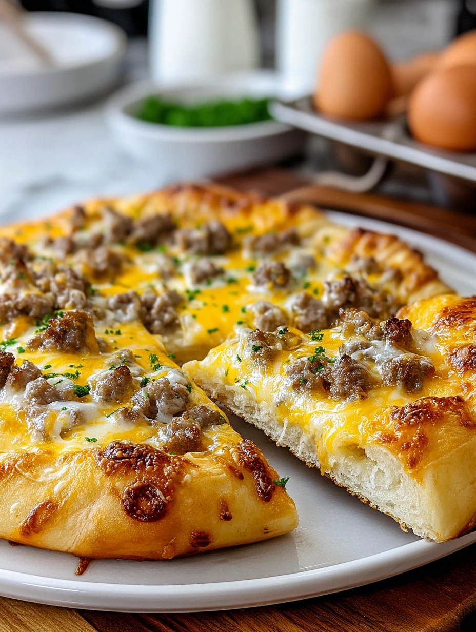 Sausage Gravy Crescent Roll Breakfast Pizza