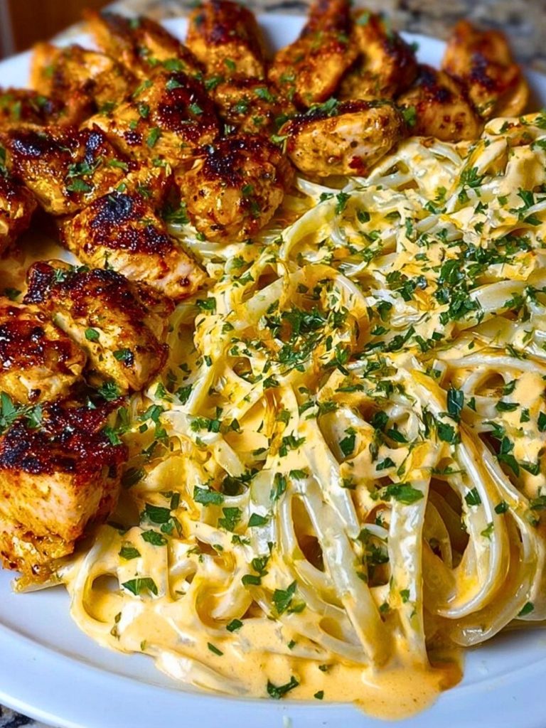 This dish combines the smoky heat of Cajun seasoning with the indulgent creaminess of a classic pasta favorite. Each forkful delivers contrast—crispy-edged chicken, tender noodles, and a rich sauce that binds it all together. It’s a show-stopping plate that’s weeknight-easy and weekend-worthy.