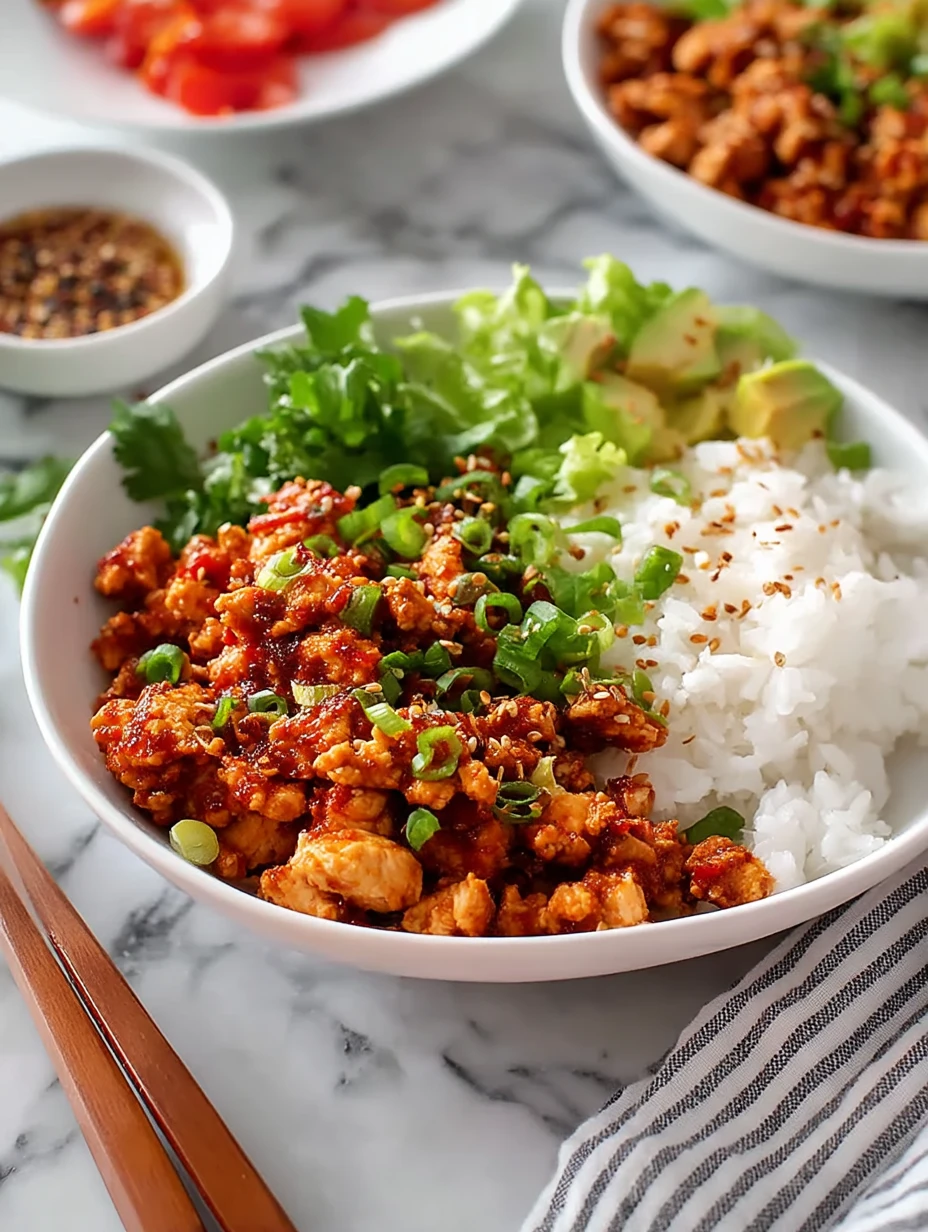 The magic is all in the contrast. You have savory ground chicken, a glossy sauce with heat and sweetness, soft rice to soak everything up, and bright toppings that keep the bowl from feeling heavy. Every bite hits a little differently, which is why this kind of meal never gets boring.