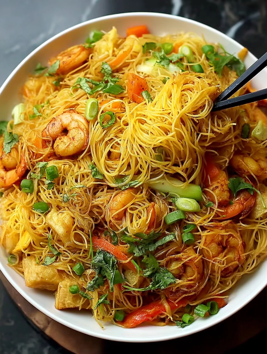 Bring your favorite takeout home with these vibrant, flavor-packed Singapore Noodles. This quick stir-fry combines tender chicken, crisp vegetables, and springy rice vermicelli noodles all tossed in a warmly spiced curry sauce. It’s light yet filling, bold yet balanced, and ready in under 30 minutes—perfect for weeknight meals or impressing guests with minimal effort. Whether you’re after a quick dinner, easy noodle recipe, or a healthy stir-fry idea, this dish delivers satisfying results with every bite.