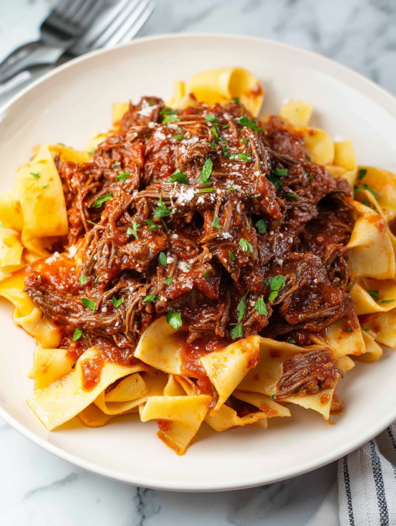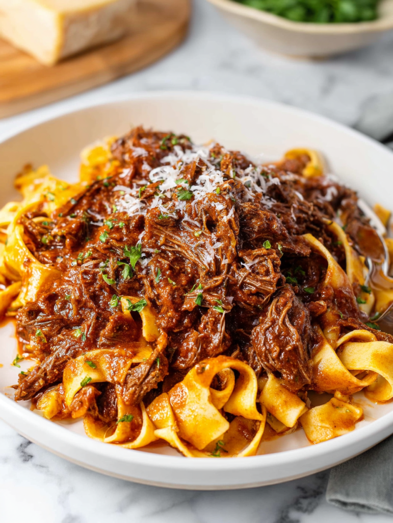What makes this recipe truly shine is the way it transforms humble ingredients into something that feels indulgent. With just a bit of prep and a slow cooker doing most of the work, you’ll have a dinner that tastes like it came from a rustic Italian kitchen. Get ready for bold flavors, melt-in-your-mouth beef, and a sauce so good you’ll want to eat it by the spoonful.