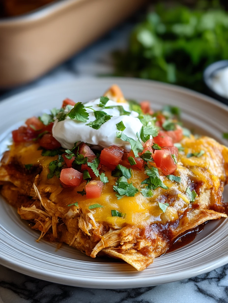 Absolutely, and it works beautifully. Instead of rolling individual enchiladas, you layer the ingredients right into the slow cooker. As everything cooks, the tortillas soften, the chicken absorbs the sauce, and the cheese melts into every layer.