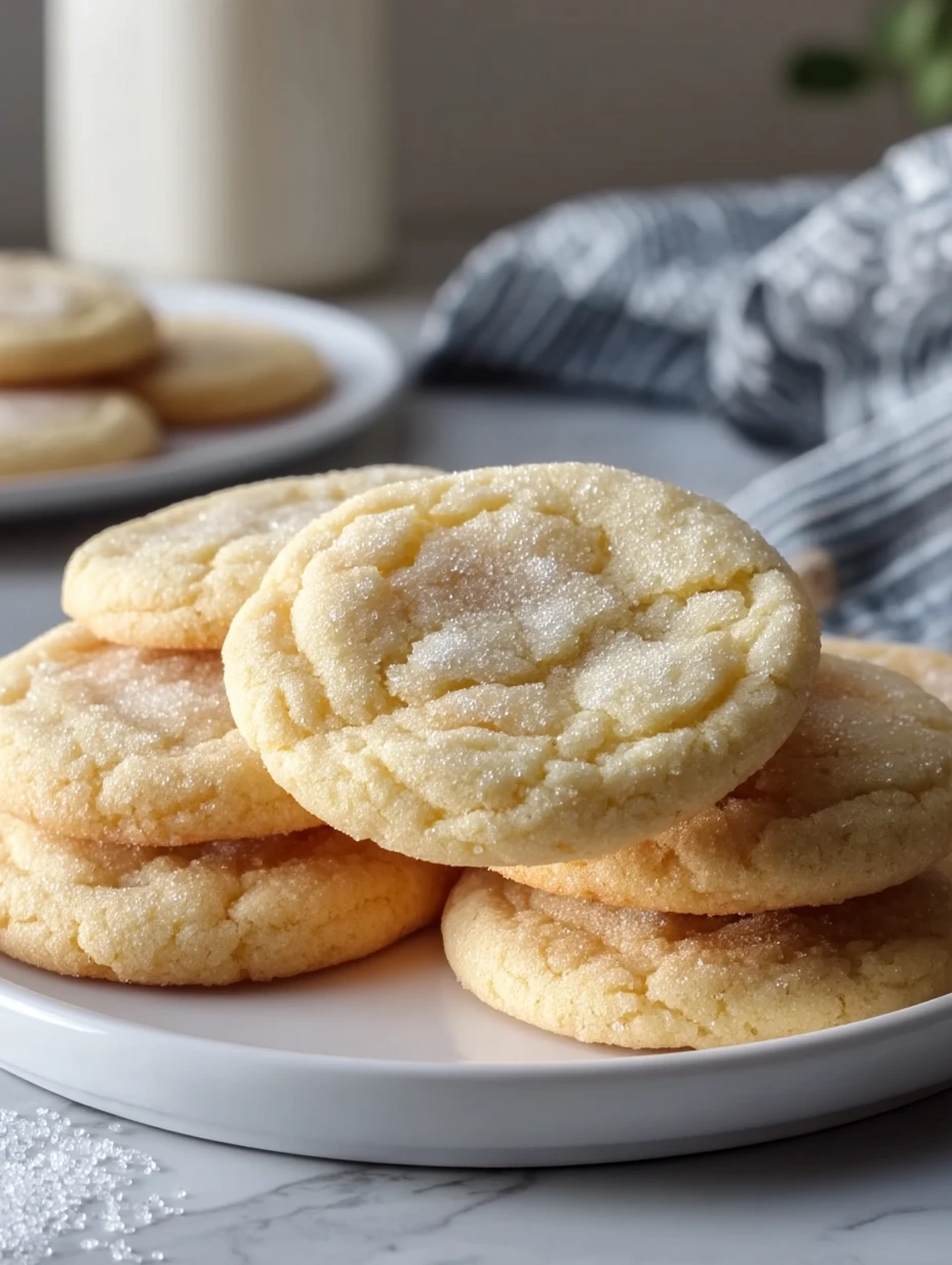 All-purpose flour forms the base of the dough and keeps the cookies sturdy enough to hold their shape. Baking soda helps the cookies spread just enough while keeping the texture light. Salt balances the sweetness and makes the buttery vanilla flavor pop. Extra sugar for rolling gives the tops that beautiful sparkle and a delicate crunch.
