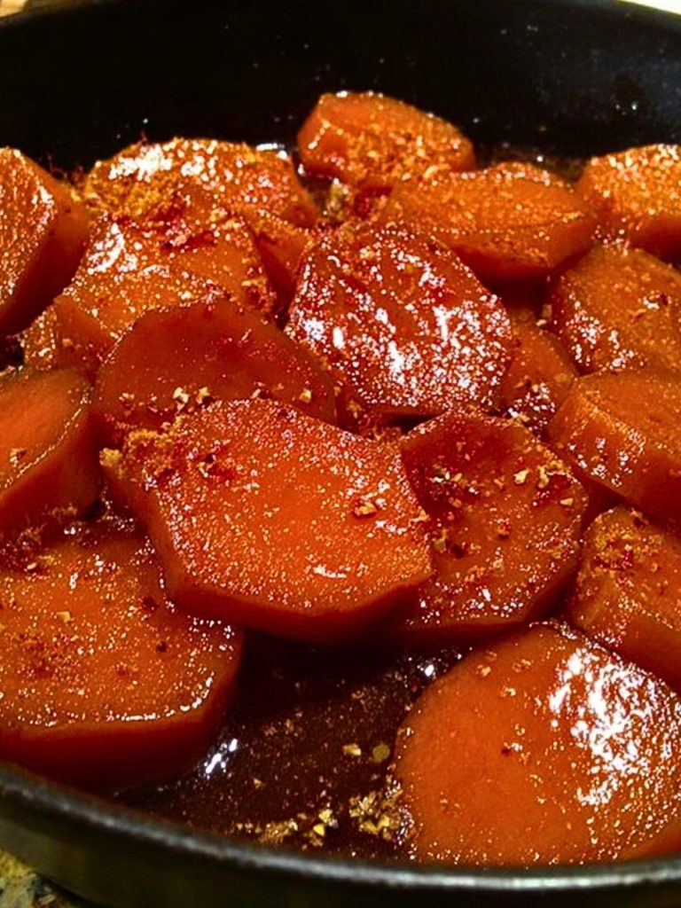 Choose orange-fleshed sweet potatoes (often labeled as “yams” in U.S. grocery stores) for this dish. Varieties like Beauregard or Garnet work best because they’re naturally sweet, vibrant in color, and hold their shape after cooking. Avoid white or purple sweet potatoes as they don’t caramelize the same way and may turn out dry or overly starchy.