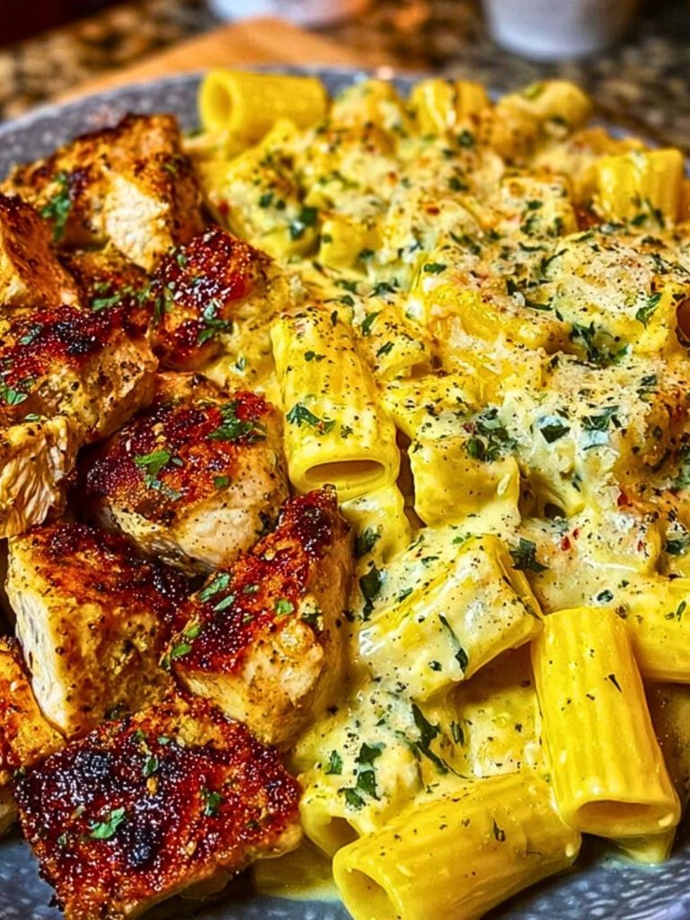 This recipe hits all the comfort food high notes: spicy, cheesy, creamy, and hearty. The seared Cajun chicken offers a beautiful contrast to the velvety sauce, and the pasta soaks up every delicious drop. Whether you’re cooking for a crowd or treating yourself to a flavorful dinner, this rigatoni dish will impress without being overly complicated.