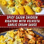 Keywords: cajun chicken pasta, spicy rigatoni, Velveeta cream sauce, easy dinner, chicken pasta recipe