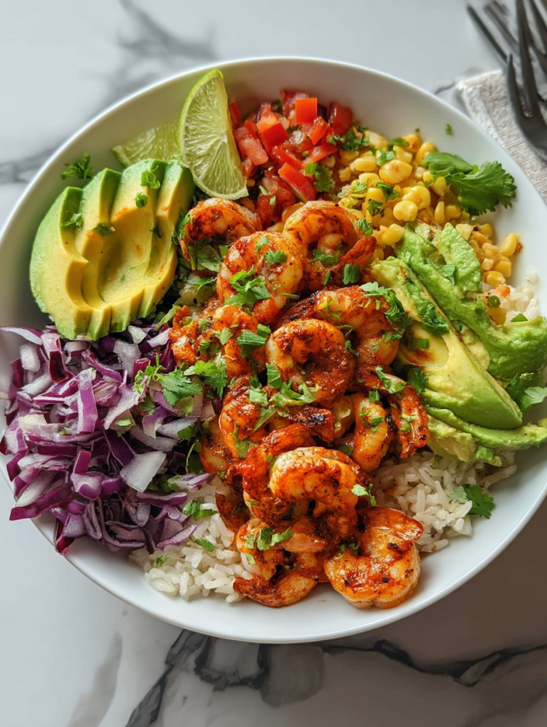 Bring the heat to your dinner table with this vibrant, flavor-packed Spicy Shrimp Burrito Bowl. Perfectly grilled shrimp are tossed in a smoky chili-lime marinade, paired with fluffy rice, creamy avocado, black beans, crisp cabbage, and juicy sweet corn. It’s a colorfully nourishing bowl that satisfies all your cravings while staying light and fresh.
