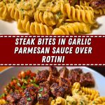 Keywords: steak bites, garlic parmesan, pasta, rotini, creamy sauce