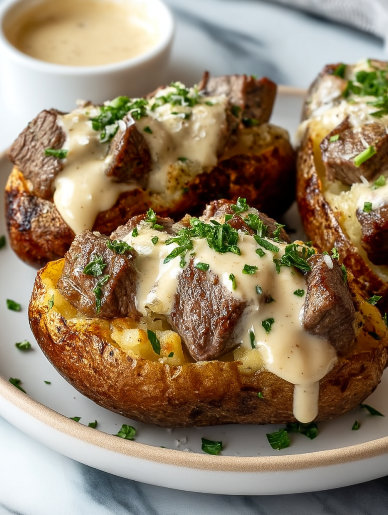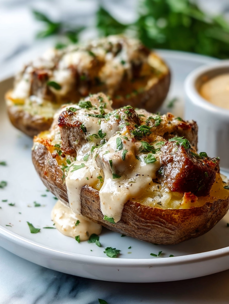 Why You’ll Love This Steak-Stuffed Baked Potatoes with Parmesan Cream Sauce