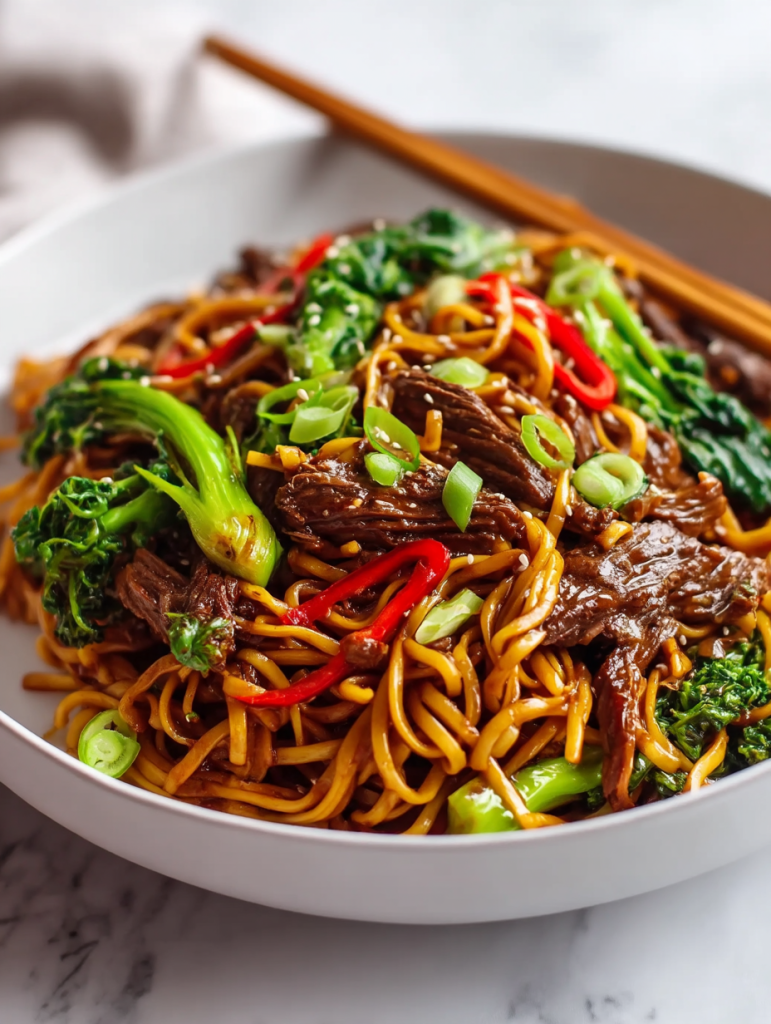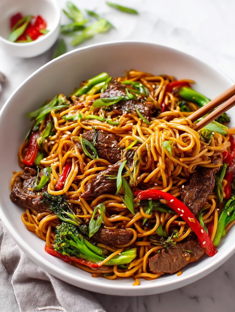 Sticky Beef Noodles are everything you crave in a weeknight dinner: quick, packed with flavor, and wonderfully satisfying. Imagine slurpy noodles coated in a rich, savory sauce clinging to tender strips of beef, with bright, crunchy veggies in every bite. It’s a stir-fry fusion dream that hits all the right notes—sweet, salty, umami, and a hint of spice.