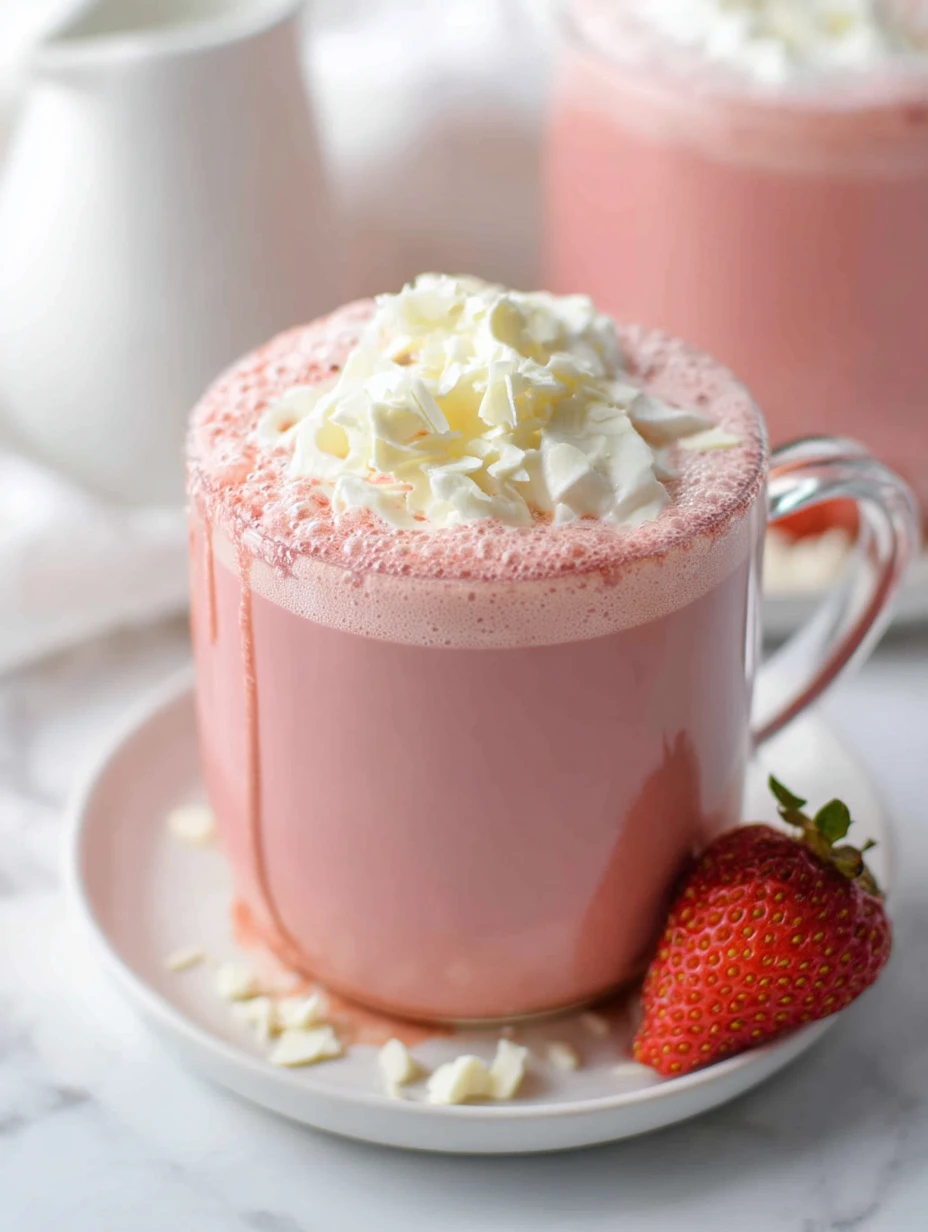 Cozy up with a mug of this beautiful pink *Strawberry Hot Chocolate*—a creamy blend of white chocolate and real strawberry that tastes like a warm hug. This easy recipe is a fun twist on the classic hot chocolate, perfect for chilly days, festive mornings, or whenever you crave something sweet and comforting. Whether you use strawberry syrup or puree, you’ll love how simple and delicious it is. It’s a must-have in your winter drink collection, and a great addition to your list of easy recipe ideas for a quick breakfast, healthy snack, or fun food ideas for kids and adults alike.