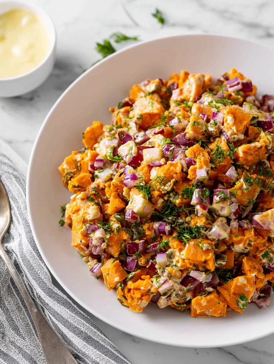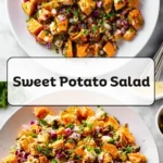 This Sweet Potato Salad is not your average leafy bowl. It’s warm, hearty, and absolutely packed with vibrant flavors that make every bite crave-worthy. Roasted sweet potatoes tossed with lentils, cranberries, red onion, and herbs, then finished with a creamy tahini dressing – it’s the kind of dish that makes salad lovers out of skeptics.