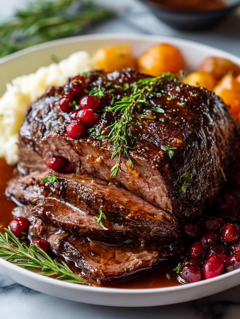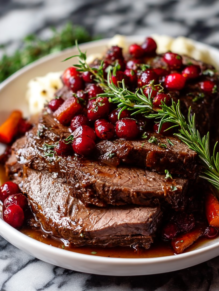 Tender Balsamic Cranberry Beef Roast is where classic comfort meets gourmet flair. A slow-cooked, melt-in-your-mouth beef roast bathed in a tangy balsamic glaze and crowned with juicy, ruby-red cranberries, this dish brings warmth and elegance to your dinner table.